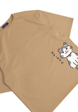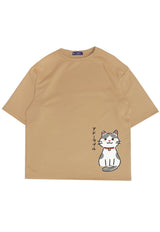 MTQ93 kaos oversize scuba bahan tebal versi couple "japan cat" khaki