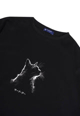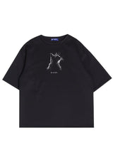 MTR47 kaos oversize scuba tebal pria "cat outline katakana" hitam