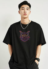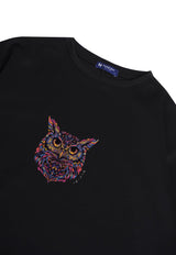MTR77 Kaos Oversize Gambar Burung Hantu Owl Bahan Tebal Scuba "owl katakana" Hitam