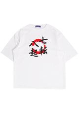 MTS49 Kaos Oversize Tulisan Jepang ScubaLux Bahan Tebal "fall seven, get up eight" putih
