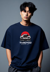 MTS57 Kaos Oversize Gambar Mobil Balap Sports Car Bahan Scuba Tebal "front view" navy