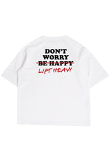 MTS90 Kaos Oversize Gym Bahan ScubaLux Bahan Tebal "don't worry lift heavy" putih
