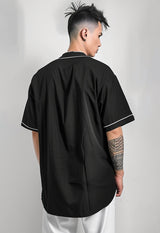 MTS93 Kemeja Baseball Oversize Jersey Polos "Osaka" Hitam