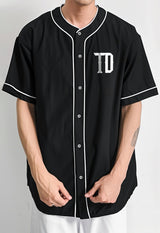 MTS94 Kemeja Baseball Oversize Jersey Hitam Polos "TD spike" hitam