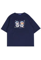 MTT06 Kaos Oversize Gambar Astronot Kucing Anjing Bahan Scuba Tebal Navy