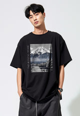 MTT25 Kaos Gambar Gunung Oversize Scubalux Bahan Scuba tebal "mount fuji" Hitam