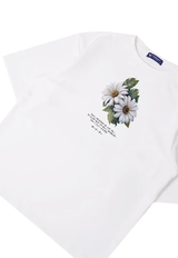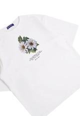 MTT62 Kaos gambar bunga oversize scuba "two daisies" putih