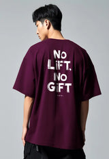 MTT65 kaos gym oversize pria natal bahan tebal scubalux "no lift no gift" burgundy merah