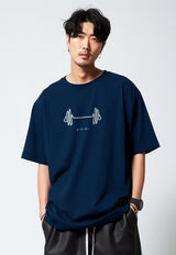 MTU51 Kaos Oversize Bahan Tebal Scuba "barbell sketch" navy