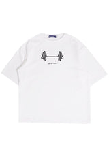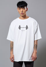 MTU52 Kaos Oversize Bahan Tebal Scuba "barbell sketch" putih