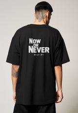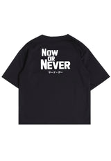 MTV02 Kaos Oversize Bahan Scuba Tebal "now or never" hitam