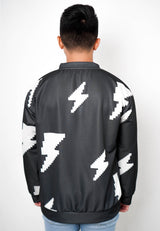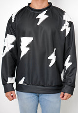 NW001 sweater oversize petir ringan estetik branded fullprint crewneck distro efek rajut hitam putih