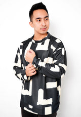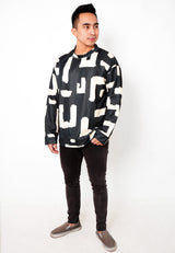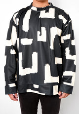 NW003 sweater oversize abstrak esterik korean style kpop kece garis garis lightweight hitam krem unisex efek rajut fit to XXL