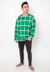 NW008 sweater oversize garis garis lightweight warna hijau green couple fit to xxl
