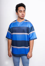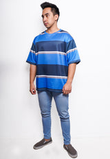 NX001 kaos oversize belang stripe light scuba biru hitam putih