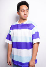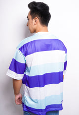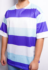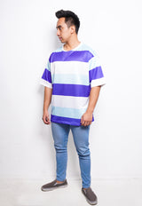 NX005 kaos oversize belang stripe light scuba blue biru muda putih putih