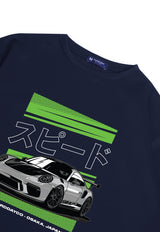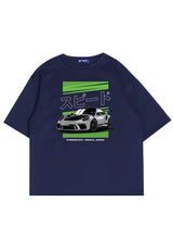 MTN34 kaos oversize scuba tebal mobil balap hijau neon speed navy
