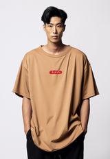 MTN38 kaos oversize abu scuba tebal tulisan jepang simple merah scribble katakana khaki