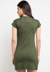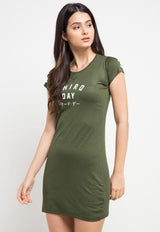 - T-shirt dress desain bodycon dengan text print