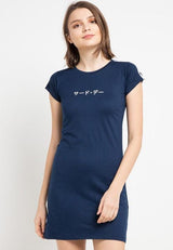 - T-shirt dress kasual detail tape dengan brandmark