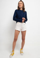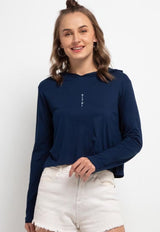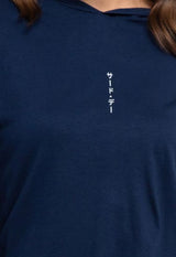 Third Day LTD80 Crophood Kaos Hoodie Wanita Crop Katakana Straight Navy