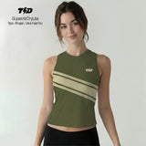 TDACTIVE Kaos Lari Wanita Lengan Pendek Drifit hijau olive krem 3stripe tdbolt LSF42