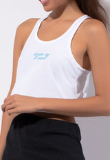 LSB80 kaos tank top putih crop olahraga sport gym yoga UAT "td logo light blue" white putih