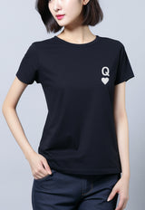 LTF33 kaos wanita lengan pendek slim fit "queen of hearts" instacool hitam