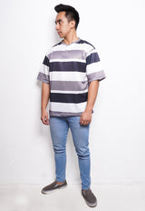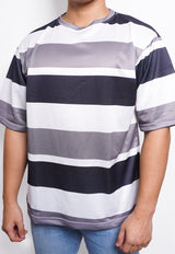 NX008 kaos oversize belang tipis stripe light scuba hitam abu putih